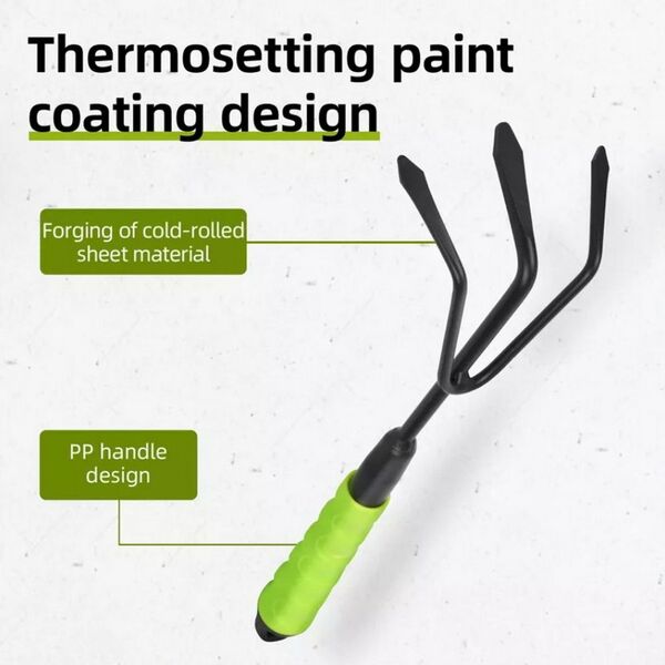 Рыхлитель садовый ручной трехзубый Deli DL580815 длина 30 см, защита от ржавчины и коррозии, противоскользящая рукоять