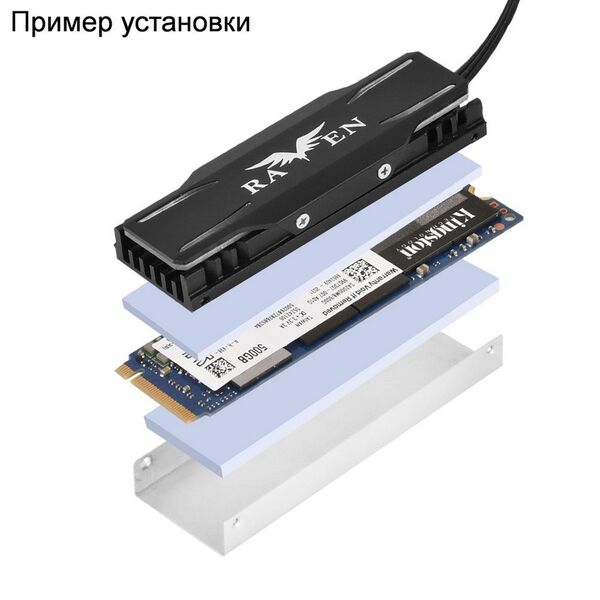 - Комплект из 2x силиконовых термопроводящих прокладок (1мм для 2-стороннего SSD и 1.5мм для 1-стороннего SSD) и радиатора с прижимной пластиной. Монтаж без инструментов. Теплопроводность 1.5Вт/м.К. ARGB подсветка. Эксплуатация -20~+90С