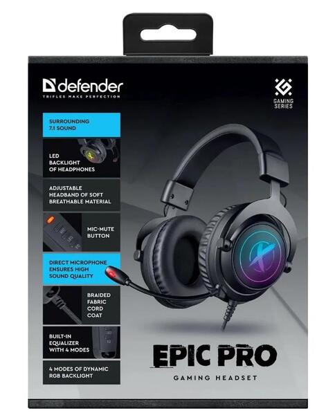 Defender Игровая гарнитура Epic Pro объемный звук 7.1, провод 2 м купить в интернет-магазине TPShop.Ru. Наличный и безналичный расчет, розничные и оптовые продажи. Самовывоз, доставка по Москве и МО, отправка во все регионы России.