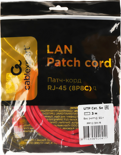 Патчкорд Патч-корд Premier PP12-3M/R 1000Гбит/с UTP 4 пары cat5E CCA molded 3м красный RJ-45 (m)-RJ-45 (m) купить в интернет-магазине TPShop.Ru. Наличный и безналичный расчет, розничные и оптовые продажи. Самовывоз, доставка по Москве и МО, отправка во все регионы России.
