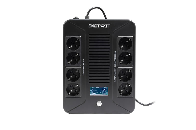 - SMARTWATT линейно-интерактивный, 1000/600 ВА/Вт, напольный/настенный, LCD дисплей, Shuko CEE7/4 - 8 шт. (4 шт. с резервным питанием, 4 шт. - сетевой фильтр) (3703020280003)