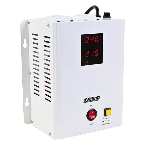 - Отключение нагрузки при выходном напряжении выше 255В; при снижении напряжения - автоматическое подключение. Отключение нагрузки при выходном напряжении ниже 180В; при повышении напряжения - автоматическое подключение. Отключение нагрузки при температуре трансформатора 120˚С, автоматическое подключение при 90˚С