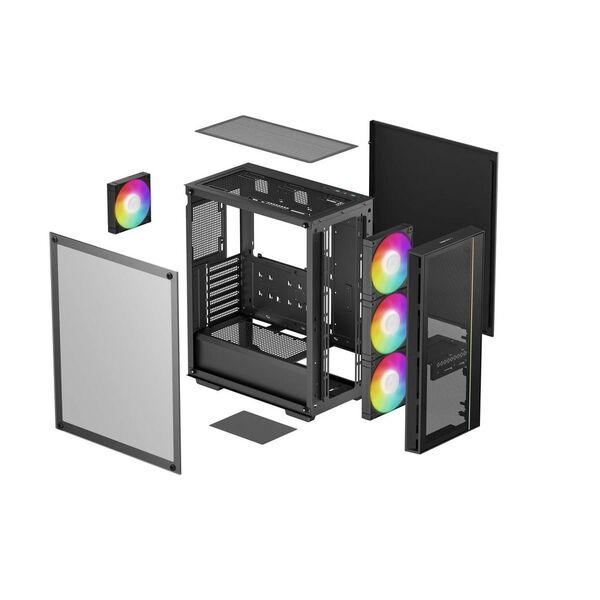 Корпус Deepcool MATREXX 55 MESH V4 без БП, боковое окно (закаленное стекло), 3xARGB LED 140мм вентилятора спереди, 1xARGB LED 120мм вентилятор сзади, черный, ATX