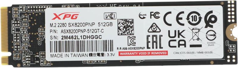 Накопитель SSD ADATA 512GB XPG SX8200 Pro, M.2 2280, PCI-E 3x4, [R/W - 3350/2350 MB/s] 3D-NAND TLC