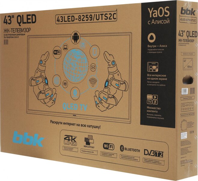Телевизор Телевизор QLED BBK 42.5" 43LED-8259/UTS2C Яндекс.ТВ черный 4K Ultra HD 60Hz DVB-T2 DVB-C DVB-S2 USB WiFi Smart TV (RUS)