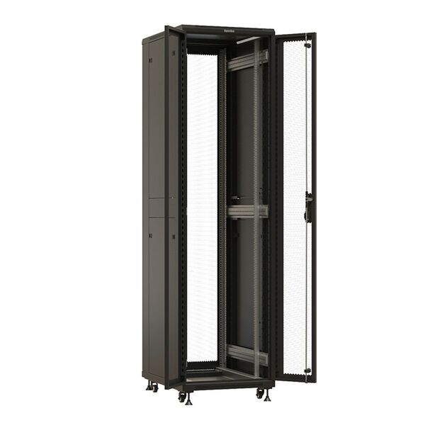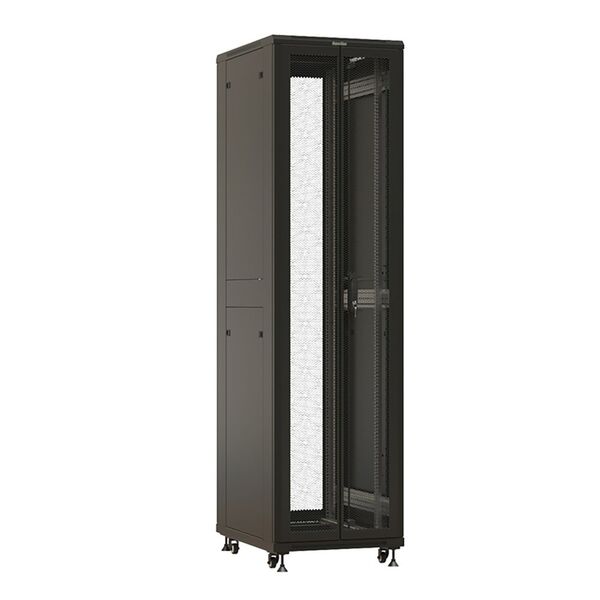 Шкаф Hyperline TTBR-4762-DD-RAL9004 Шкаф напольный 19-дюймовый, 47U, 2277x600х1200 мм (ВхШхГ), передняя и задняя распашные перфорированные двери (75%), ручка с замком, цвет черный (RAL 9004)(разобранный)