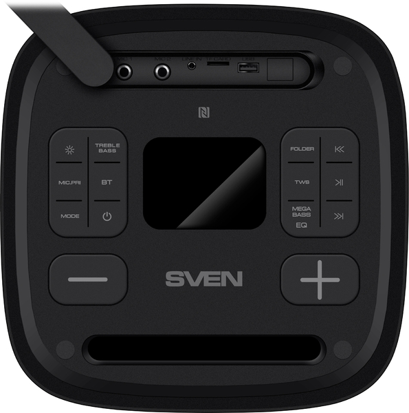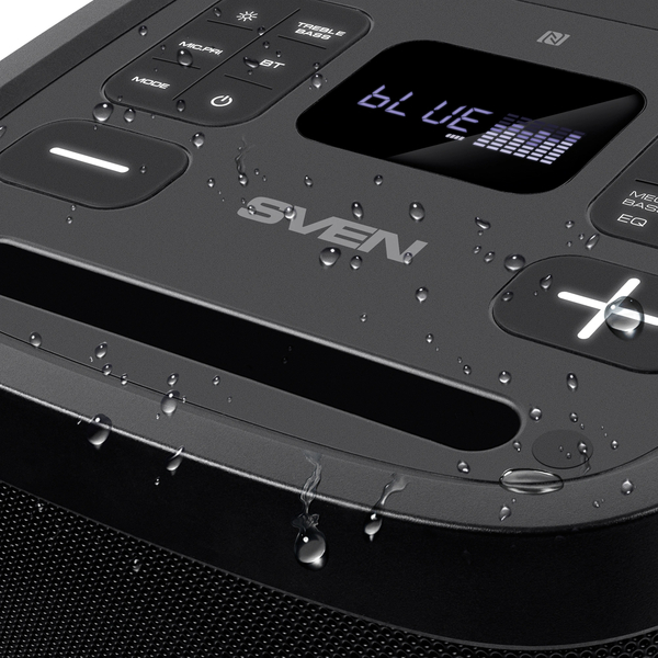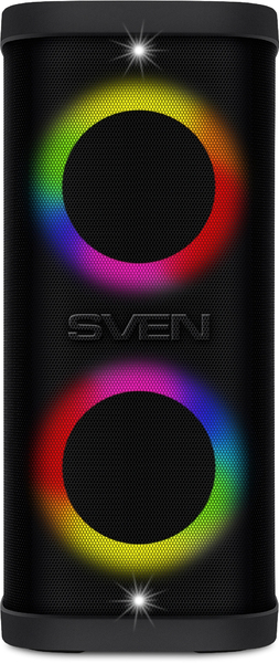 Акустическая система Мобильные колонки SVEN PS-950 2.0 чёрные (2x80 W, IPx4, mini Jack, 2 х 6.35 мм Jack, USB, NFC, Bluetooth, FM, micro SD, ПДУ, 2 x 4400 мA, LED подсветка) купить в интернет-магазине TPShop.Ru. Наличный и безналичный расчет, розничные и оптовые продажи. Самовывоз, доставка по Москве и МО, отправка во все регионы России.