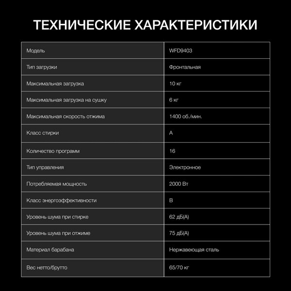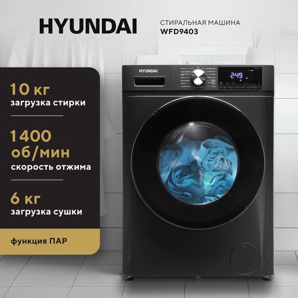 Стиральная машина Hyundai WFD9403 класс: B загр.фронтальная макс.:10кг (с сушкой) темно-серый купить в интернет-магазине TPShop.Ru. Наличный и безналичный расчет, розничные и оптовые продажи. Самовывоз, доставка по Москве и МО, отправка во все регионы России.
