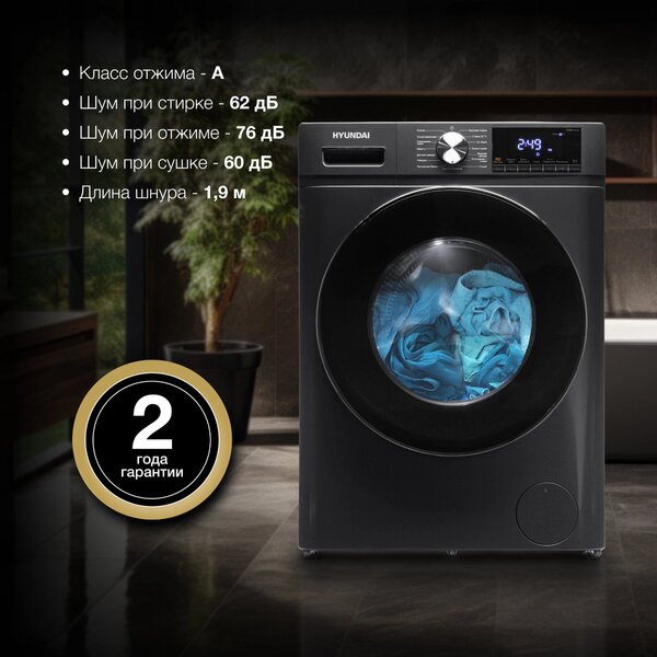 Стиральная машина Hyundai WFD9403 класс: B загр.фронтальная макс.:10кг (с сушкой) темно-серый