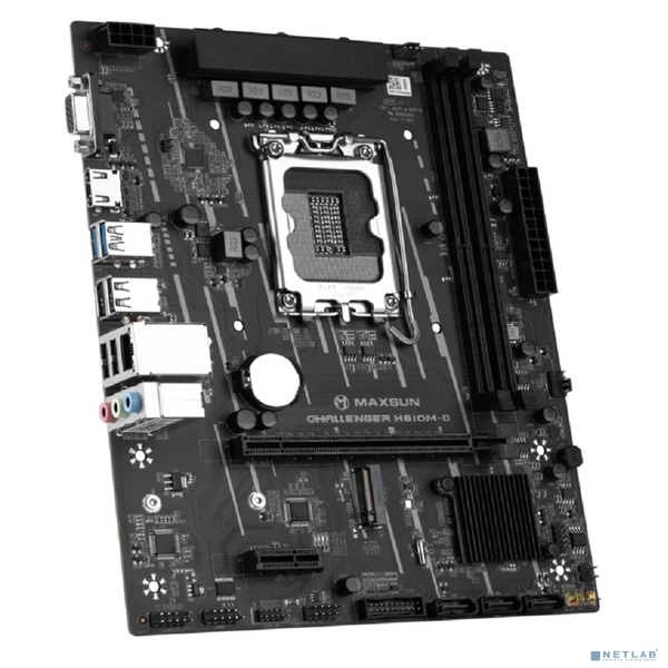 Материнская плата MAXSUN MS-Challenger H610M-D, LGA1700, H610, 2*DDR4, 3*SATA3, M.2, 2*USB 3.2, 4*USB 2.0, 1*PCIEx16, 1*PCIEx1, VGA+HDMI, mATX