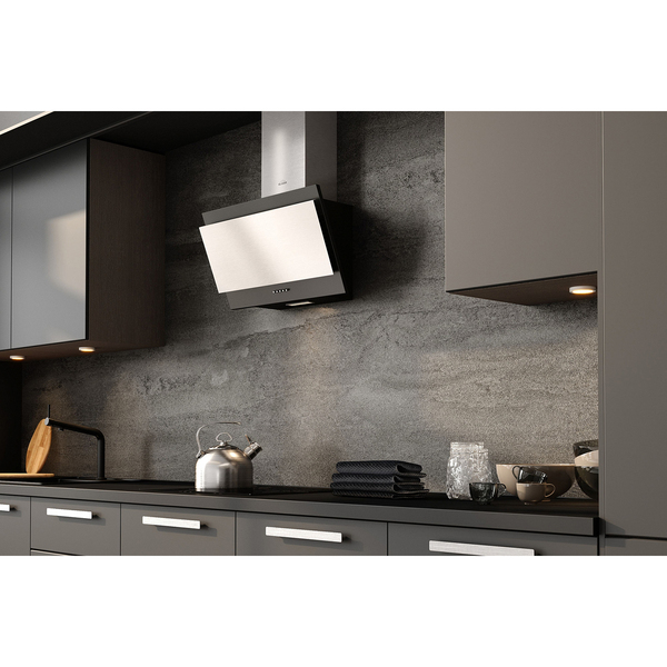 Вытяжка Kuppersberg / наклонная, 60 см, 600 м3 / ч, отвод / рециркуляция, 3 скорости, черный + нерж. сталь