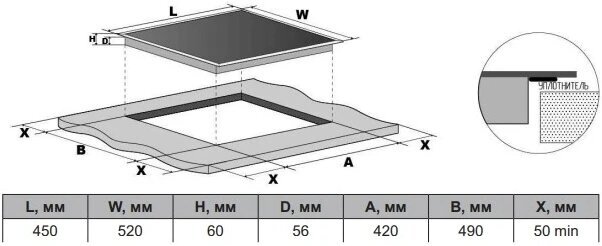 - блокировка управления (защита от детей), защитное отключение, распознавание наличия посуды