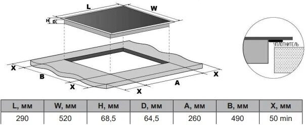 - Размеры для встраивания