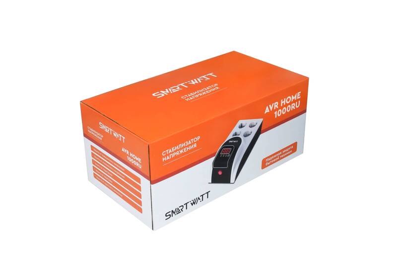Стабилизатор напряжения Бытовой стабилизатор напряжения SMARTWATT AVR HOME 500RU (150W - 275W, 500VA, 0.5 кВт, 50 Гц, розеток — 4, LED-дисплей, релейный, Универсальный, 230x130x110мм, 1,9кг)