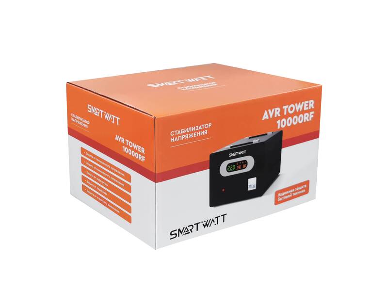 Стабилизатор напряжения Напольный стабилизатор напряжения SMARTWATT AVR TOWER 10000RF (140W - 260W, 10000VA, 10 кВт, 50-60 Гц, LED-дисплей, релейный, Напольный, 290x220x415мм, 16,6 кг) купить в интернет-магазине TPShop.Ru. Наличный и безналичный расчет, розничные и оптовые продажи. Самовывоз, доставка по Москве и МО, отправка во все регионы России.