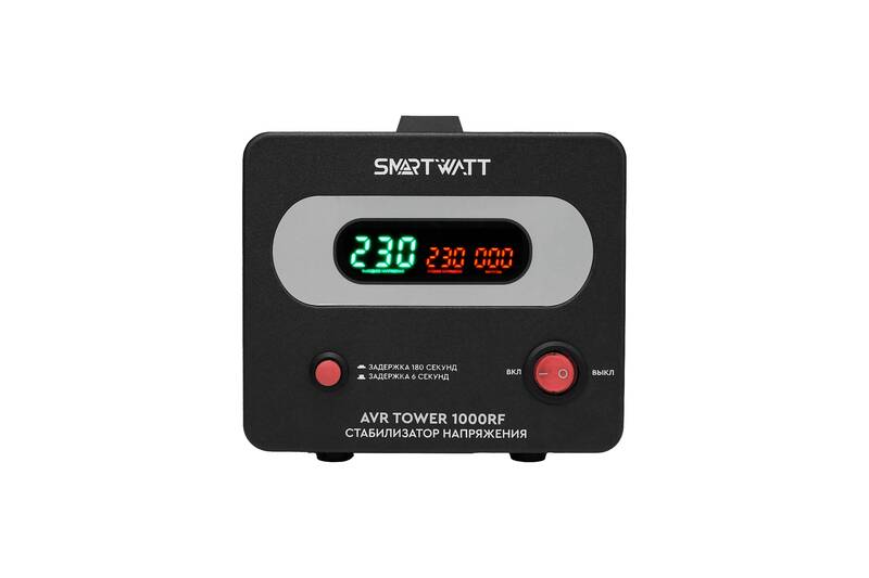 Стабилизатор напряжения Напольный стабилизатор напряжения SMARTWATT AVR TOWER 1000RF (140W - 260W, 1000VA, 1 кВт, 50-60 Гц, розеток - 1, LED-дисплей, релейный, Напольный, 140x118x220мм, 2,62 кг)