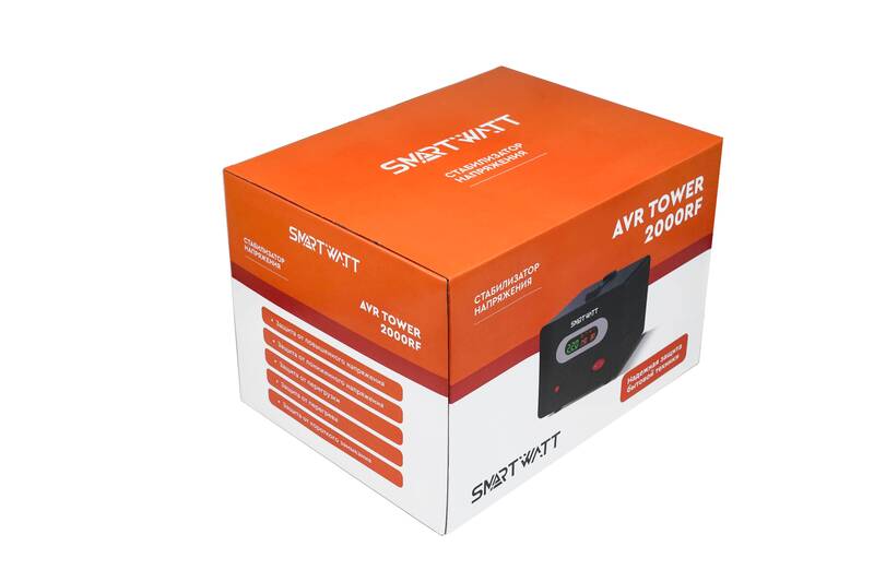 Стабилизатор напряжения Напольный стабилизатор напряжения SMARTWATT AVR TOWER 2000RF (140W - 260W, 2000VA, 2 кВт, 50-60 Гц, розеток - 2, LED-дисплей, релейный, Напольный, 190x150x235мм, 4,44 кг)