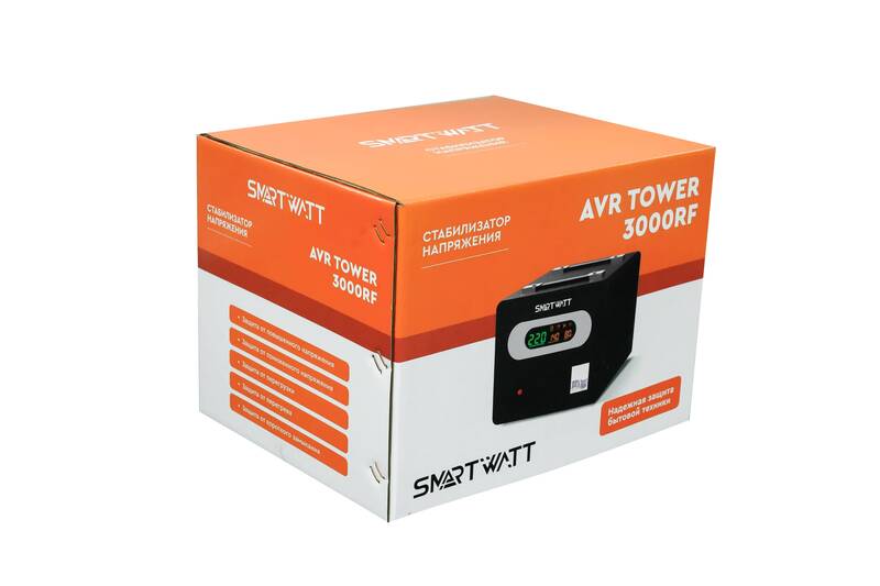 Стабилизатор напряжения Напольный стабилизатор напряжения SMARTWATT AVR TOWER 3000RF (140W - 260W, 3000VA, 3 кВт, 50-60 Гц, LED-дисплей, релейный, Напольный, 240x205x310мм, 7,2 кг) купить в интернет-магазине TPShop.Ru. Наличный и безналичный расчет, розничные и оптовые продажи. Самовывоз, доставка по Москве и МО, отправка во все регионы России.