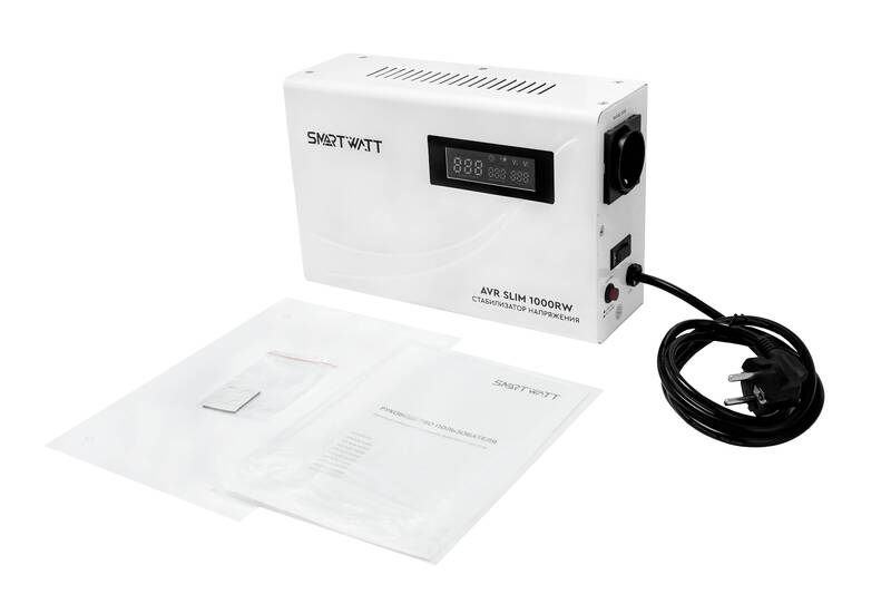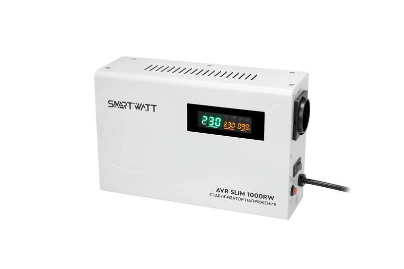 Стабилизатор напряжения Настенный стабилизатор напряжения SMARTWATT AVR SLIM 1000RW (100W - 260W, 1000VA, 1 кВт, 50 Гц, розеток - 1, LED-дисплей, релейный, Настенный, 260x170x90мм, 3кг)