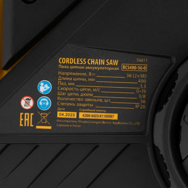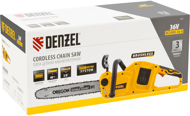 Цепная пила аккумуляторная бесщет. RCS400-36-0, Li-ion, 36 В, шина 400 мм// Denzel купить в интернет-магазине TPShop.Ru. Наличный и безналичный расчет, розничные и оптовые продажи. Самовывоз, доставка по Москве и МО, отправка во все регионы России.