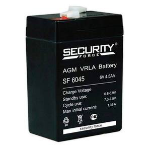 Аккумуляторная батарея Аккумуляторная батарея Delta (Security Force) SF 6045 напряжение 6В, емкость 4,5Ач, клемма F1 (ДхШхВ: 70х47х100мм Полная высота 106мм;Кол-во элементов 3; Срок службы 3-5лет; Гарантия 1год)