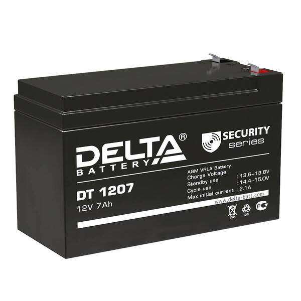Аккумуляторная батарея Аккумуляторная батарея Delta DT 1207 напряжение 12В, емкость 7Ач, клемма F1 (ДхШхВ: 151х65х95мм Полная высота 102мм; Вес 2,05кг; Кол-во элементов 6; Срок службы 5лет; Гарантия 1год) купить в интернет-магазине TPShop.Ru. Наличный и безналичный расчет, розничные и оптовые продажи. Самовывоз, доставка по Москве и МО, отправка во все регионы России.