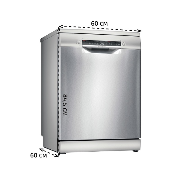 BOSCH SMS6EMI65Q, Serie 6, Отдельностоящая посудомоечная машина 60см., цвет: нержавеющая сталь; Класс A-A-A; 8 программ;13 компл.посуды; отсрочка старта 24ч;3-й короб ; система защиты от протечек; Половинная загрузка, HygienePlus.