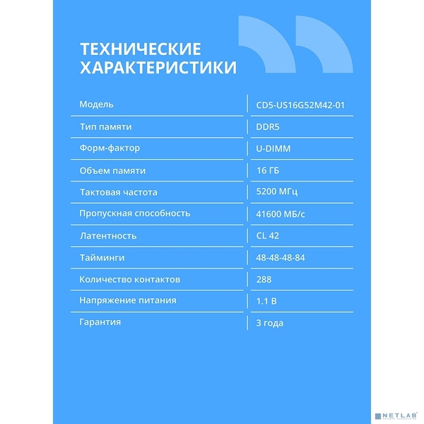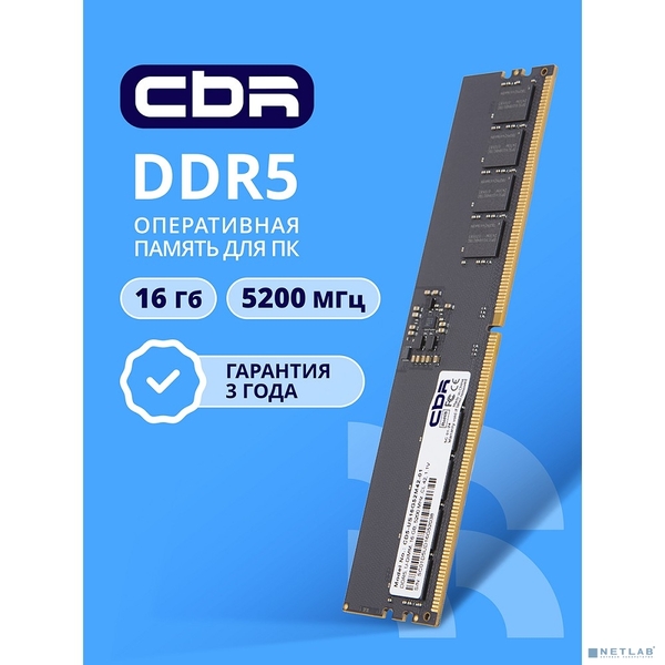 Оперативная память CBR DDR5 DIMM (UDIMM) 16GB CD5-US16G52M42-01 PC5-41600, 5200MHz, CL42, 1.1V купить в интернет-магазине TPShop.Ru. Наличный и безналичный расчет, розничные и оптовые продажи. Самовывоз, доставка по Москве и МО, отправка во все регионы России.
