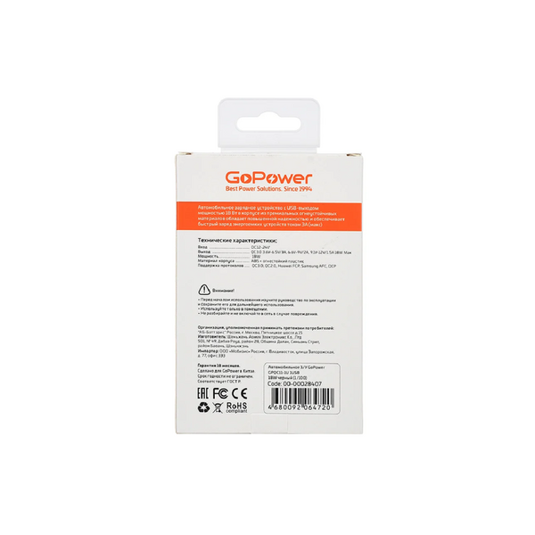 Автомобильное З/У GoPower GPQC11-1U 1USB 18W черный (1/100) купить в интернет-магазине TPShop.Ru. Наличный и безналичный расчет, розничные и оптовые продажи. Самовывоз, доставка по Москве и МО, отправка во все регионы России.