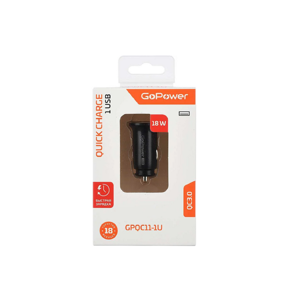 Автомобильное З/У GoPower GPQC11-1U 1USB 18W черный (1/100)