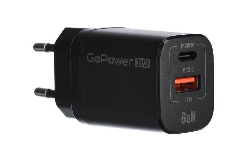 Сетевое З/У GoPower GPQC09 1USB+1Type-C 35W QC3.0 GAN черный