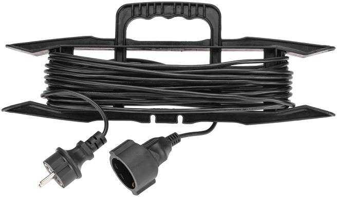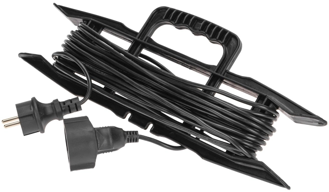- Конструкция предусматривает наличие одного гнезда. Устройство обладает высокой надежностью и безопасностью, благодаря использованию качественных материалов. Для удобства транспортировки и хранения шнур поставляется на рамке.