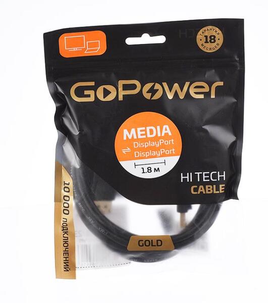 Кабель GoPower DisplayPort (m)-DisplayPort (m) 1.8м ПВХ ver.1.4 черный Premium Zip-Lock c подвесом