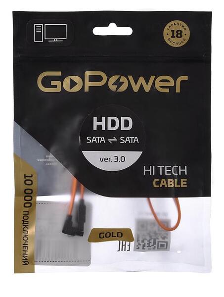 Кабель GoPower SATA (m)-SATA (m) 0.5м силикон ver.3.0 оранжевый в пакете (1/250)