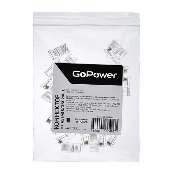 Патчкорд Коннектор GoPower RJ-45 (m) кат.5е (цена за упаковку) 20шт. (1/100) купить в интернет-магазине TPShop.Ru. Наличный и безналичный расчет, розничные и оптовые продажи. Самовывоз, доставка по Москве и МО, отправка во все регионы России.