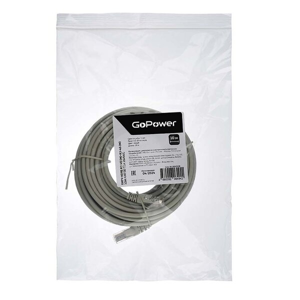 Патчкорд Патч-корд GoPower RJ-45 (m)-RJ-45 (m) 20.0м кат.5е ПВХ 26AWG CCA серый в пакете (1/20) купить в интернет-магазине TPShop.Ru. Наличный и безналичный расчет, розничные и оптовые продажи. Самовывоз, доставка по Москве и МО, отправка во все регионы России.