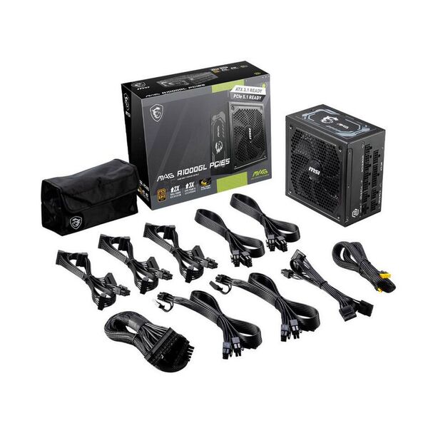 Блок питания Блок питания MSI MAG A1000GL PCIE5 1000W, 80+ Gold, полностью модульный, ATX 3.0, PCIE5, RTL