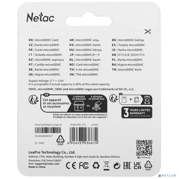 Netac P500 ECO 32GB MicroSDHC C10 up to 80MB/s, retail pack with SD Adapter купить в интернет-магазине TPShop.Ru. Наличный и безналичный расчет, розничные и оптовые продажи. Самовывоз, доставка по Москве и МО, отправка во все регионы России.