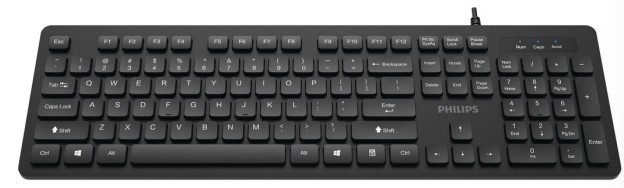 - Philips Проводная Клавиатура SPK6264, USB 2.0 104 клав, русская заводская раскладка, чёрный