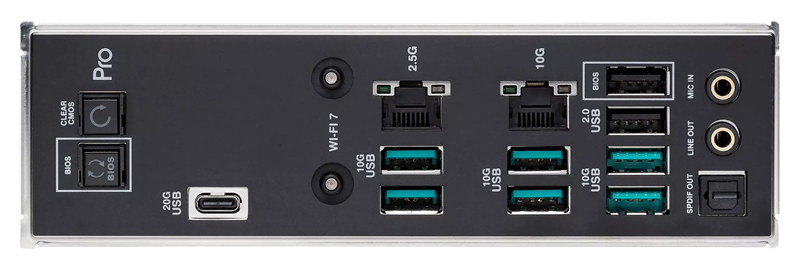 - 1xUSB Type-C, 6xUSB Type-A, 2xUSB 2.0, 2x Аудио разъема, 1x Intel 2.5Gb Ethernet port, 1x Wi-Fi Module, 1x Marvell AQtion 10Gb Ethernet port, 1x Optical S/PDIF