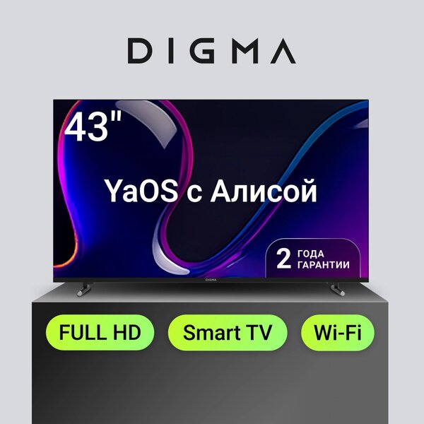 Телевизор Телевизор LED Digma 43" DM-LED43SBB33 Яндекс.ТВ черный FULL HD 60Hz DVB-T DVB-T2 DVB-C DVB-S DVB-S2 USB WiFi Smart TV