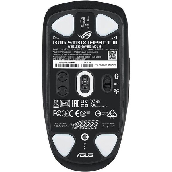 - ASUS ROG STRIX IMPACT III WIRELESS, 57g, 2.4GHz RF, Bluetooth, 36K DPI Sensor, 5 Programmable Button, Black