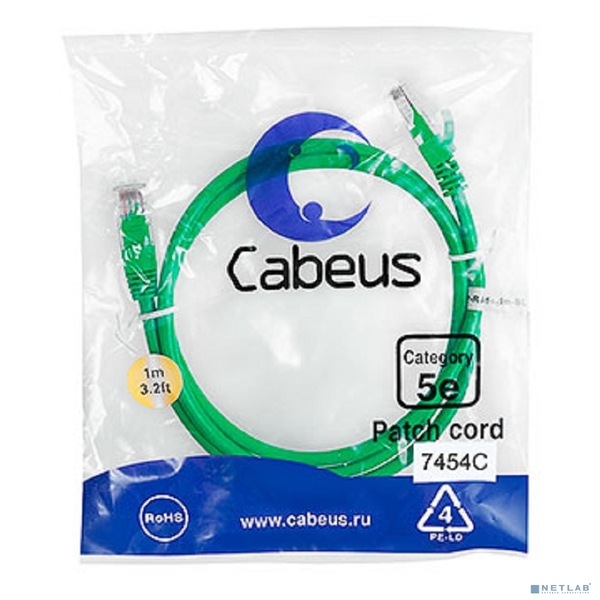 Патчкорд Cabeus PC-UTP-RJ45-Cat.5e-1m-GN Патч-корд U/UTP, категория 5е, 2xRJ45/8p8c, неэкранированный, зеленый, PVC, 1м купить в интернет-магазине TPShop.Ru. Наличный и безналичный расчет, розничные и оптовые продажи. Самовывоз, доставка по Москве и МО, отправка во все регионы России.