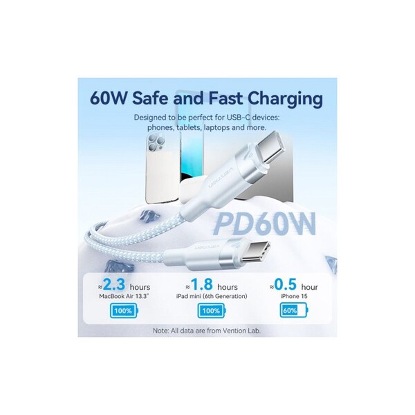 Кабель Vention USB 2.0 CM/CM - 2м. Черный 3А PD60W