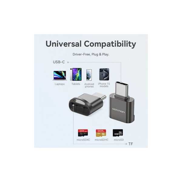 Картридер Vention OTG USB 2.0 CM / MicroSD - Серый