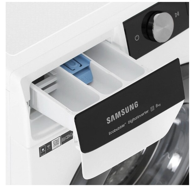 Узкая стиральная машина Стиральная машина Samsung WW80AG6S28AELP класс: A загр.фронтальная макс.:8кг белый инвертер