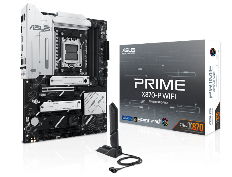 - ASUS PRIME X870-P WIFI, AM5, X870, 4*DDR5, 2*SATA, 4*M.2, 4*USB 3.2, 2*USB 2.0, 2*Type-C, 5*PCIx16, HDMI, ATX; 90MB1IS0-M0EAY0