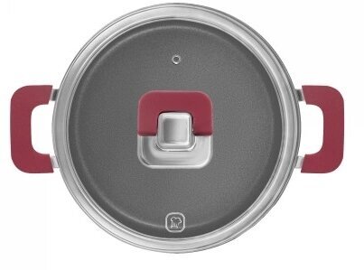 - Кастрюли 20см (3,0л), 24см (5,6л), ковш 16см (1,4л) со стеклянными крышками, сотейник 24см, сковорода 20см