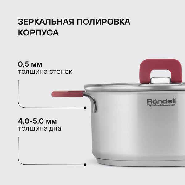 Кастрюля Rondell Heidi RDS-1113 2.8л. d=20см (с крышкой) стальной
