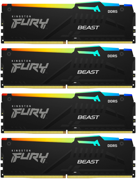 Оперативная память Память оперативная/ Kingston 64GB 5200MT/s DDR5 CL40 DIMM (Kit of 4) FURY Beast RGB XMP